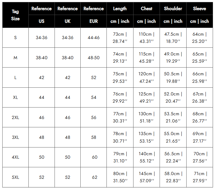 📏 Size Guide (cm)