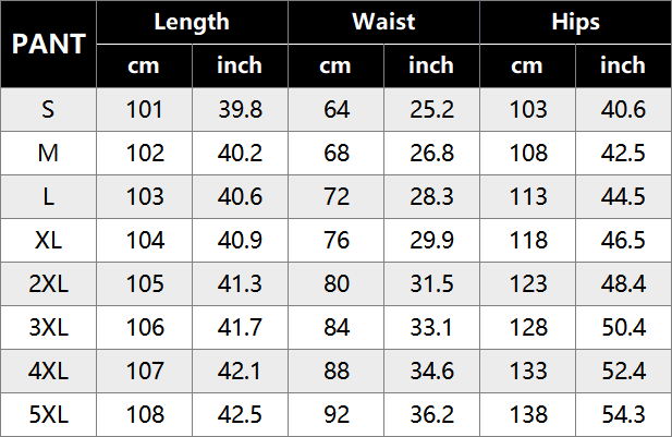 SIZE CHART: